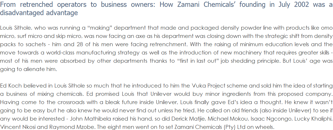 Zamani Chemicals (Pty) Ltd is strategic level 1 BBBEE one-stop-shop supplier and partner for world-class blending and handling of all industrial chemicals and homecare detergents.